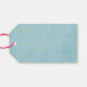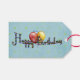 Set of 10 rectangular gift tags with an image of a red, blue and yellow balloon and “Happy Birthday” spelled out in a colourful mélange of letters on a blue background with subtle green polka dots. The back has an image of blue with subtle green polka dots. See the entire Birthday Favour & Gift Tag collection in the PARTY FAVORS section.