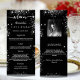 Birthday party menu card. Personalize and add a name, age, date and the menu. A chic black background, decorated with faux glitter dust. White colored letters.