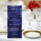 Birthday party menu card. Personalise and add a name, age, date and the menu. A navy blue background, decorated with faux silver glitter dust. The blue colour is uneve. White coloured letters.