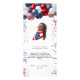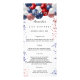 Birthday party menu card. Decorated with patriotic coloured balloons in red blue and white, blue and red sparkles. Personalise and add a name, age, date and the menu.