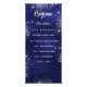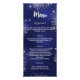 Birthday party menu and program card. Personalise and add a name, age, date and the menu. A navy blue background, decorated with faux silver glitter. The blue colour is uneven. White coloured letters.