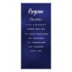 Birthday party menu and program card. Personalise and add a name, age, date and the menu. A navy blue background. The blue colour is uneven. White coloured letters.