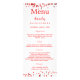Birthday party menu card. Personalise and add a name, age, date and the menu. A white background. Decorated with red confetti, red text.