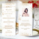 Birthday party menu card. Personalize and add a name, age, date and the menu. A chic white background, decorated with faux gold glitter dust. Golden colored letters.