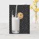 Chocolate chip cookie on glass of white milk on white polka dot and black background pattern for fun birthday.