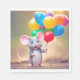 Cute grey mouse with colourful birthday balloon bouquet