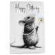 Cute sketch of a mouse holding a white daisy isolated on a white background for birthday.
