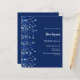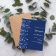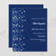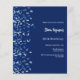 A modern, elegant and invitation. A navy blue background decorated with blue confetti. Personalise and add a name and details. White text.