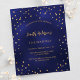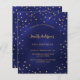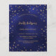 A birthday party invitation for both him and her. A navy blue background decorated with faux gold stars. The blue colour is uneven. Personalise and add a name and party details. Golden coloured text.