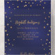 A navy blue backround decorated with golden stars. The blue colour is uneven. Personalise and add your name, and the details.