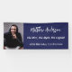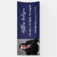 A banner for a 40th (or any age) birthday party for guys. A classic navy blue background. Personalise and add your own photo of the birthday boy/man. The text: The name in white with a modern hand lettered style script. Personalise and add a name, age 40 and a text. Text: The Man, The Myth, The Legend.