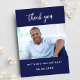 A birthday Thank You photo card. A navy blue background. Personalise and add your photo and thank you note.