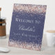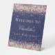 Birthday navy blue rose gold glitter welcome pedestal sign