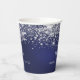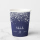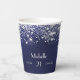 For a glamourous and girly for a 21st (or any age) birthday party. A navy blue background. The blue colour is uneven. On the front and the back: Personalise and add a name, age 21 and a date. Decorated with faux silver glitter dust. White coloured text.