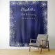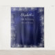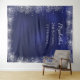 A tapestry for a girly and glamourous 21st (or any age) birthday party. A navy blue background, the blue colour is uneven. Decorated with faux silver glitter dust.  Personalise and add a name, age, date.