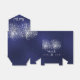 An elegant and glamourous blue and white 21st (or any age) birthday favour box. A dark navy blie coloured background with faux silver glitter dust. The blue colour is uneven. With the text: Thank You! Templates for a name, date of birth and date of anniversary and age number. White letters.