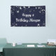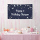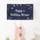 Celebrate any year birthday with this changeable navy blue, silver and white themed banner featuring stars and your custom personal message shown in an editable calligraphy script typography in your choice of text and background colours (shown in white on navy blue ) to coordinate with your party theme or their favourite colour. ASSISTANCE: For help with design modification or personalisation, colour change, resizing, transferring the design to another product or if you would like coordinating items, contact the designer BEFORE ORDERING via the Zazzle Chat MESSAGE tab below or email makeitaboutyoustore@gmail.com.