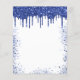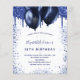 A girly and feminine 18th (or any age) birthday party invitation. On front: A white background. Decorated with navy blue faux glitter drips, paint dripping look and balloons. Personalise and add a name and party details. The name is written with a hand lettered style script.