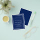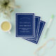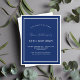 A modern, elegant and invitation. A navy blue background decorated with white frames. Personalise and add a name and details. White text.