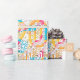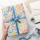 Those big, birthday milestones deserve to be celebrated with something a little special, like these special wrapping paper designs.This one, for age ninety, features the number 90 in a selection of cool fonts along with the text "Happy Birthday". Available in loads of different colour schemes, this example is a mix of bright, cheerful colours from turquoise to golden yellow on your choice of any background colour (shown here on white just as an example). Search ID270 to see other ages and additional colours for this design.