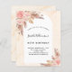 For a modern, elegant 40th (or any age) birthday party. An arch frame and rose gold marble print as background. Decorated with rose gold and pink florals, roses and pampas grass. Personalise and add a name and details.