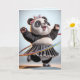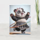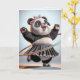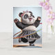 A joyful panda wearing a bow and flowers twirls a colourful hula hoop while wearing a small pleated skirt and saddle shoes.