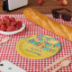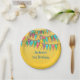 Fun party plates in a bright yellow with colourful confetti and bunting. Personalise with your text, for most any celebration. Great for kids of all ages.