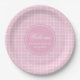 Birthday Paper Plates Pink Plaid Minimalist Design