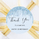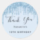 A sticker for a girly 10th (or any age) birthday party. A light blue background with baby blue faux glitter drips, paint dripping look. The text: Thank You is written with a large modern hand lettered style script. Personalise and add a name and age.