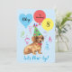 You're invited to a birthday Paw-ty with this smiling, party hat-wearing Smooth Dachshund puppy, surrounded by colourful balloons and streamers. Text can be easily personalised. Matching party supplies available.