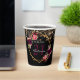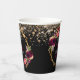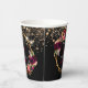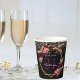 For or a girly and glamourous 21st (or any age) birthday party. A stylish black background with faux gold glitter dust. A golden geometric frame, decorated with watercolored flowers, florals in burgundy and pink. Personalise and add a name, age 21 and a date.