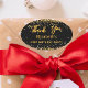 A sticker for a girly and glamourous 21st (or any age) birthday party. A stylish black background with faux gold confetti. The text: Thank You is written with a large modern hand lettered style script. Personalise and add a name and age 21