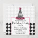 Birthday Party Black & Pink with Argyle Party Hat Invitation