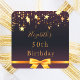For an elegant, classic, glamourous and girly style birthday. Faux gold coloured ribbon and bow with golden stars dripping. Black and deep purple gradient background. With the text: 50th (or any age) birthday. Personalise and add a name written with a modern hand lettered style script. Use as envelope seals,on thank you cards or party favours.
