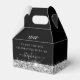 Elegant party favour box with silver glitter border and confetti sprinkles on a black background with custom XOXO thank you text, perfect for a modern and chic birthday, bat mitzvah, Quinceañera, bridal shower, baby shower or bachelorette party. Click CUSTOMIZE FURTHER to change the fonts, colours and layout to create a fun and unique personalised favour box for your party guests guests.