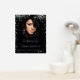 A welcome poster for a 21st (or any age) birthday party. Personalise and add a photo, a name and age. A classic black background and faux silver glitter dust. Text: real silver foil.