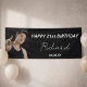 A banner celebrating a 21st (or any age)milestone birthday for a guy, man. An elegant modern black background. Personalize and add your own photo of the birthday boy/man. The text: The name in white with a modern hand lettered style script. Tempates for a name, age 21 and a date. Can be used as a party welcome sign, party wall decoration and as a keepsake.