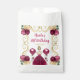 This birthday favour bag features an elegant gold frame, a beautiful princess with blonde hair and a burgundy red dress, flowers and a balloon. This is perfect for a birthday party.