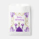 This birthday favour bag features an elegant gold frame, a beautiful princess with blonde hair and a purple dress, flowers and a balloon. This is perfect for a birthday party.