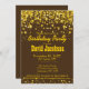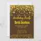 Modern and elegant birthday party invitation with rich dark gold glowing confetti glitter on a brown background.You can easily customise the text for any occasion.