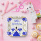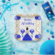 This birthday plate features an elegant gold frame, a beautiful princess with brown hair and a royal blue dress, flowers and a balloon. This is perfect for a birthday party.