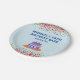 These cool blue, colourful cake paper plates will be the perfect addition to any milestone birthday party! Customise with the name, age, event title, and date of your choice. The colours and font of the text, as well as the background colour, can also be changed to fit your preference.