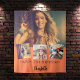 A tapestry for a 21st (or any age) birthday party. A soft coral, orange coloured background. Personalise and add 4 high quality photos of the birthday girl. The text: The name in black with a modern hand lettered style script. Tempates for a name, age. Can be used as wall decor for the party or as a photo booth backdrop.