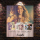A tapestry for a 21st (or any age) birthday party. A rose gold gradient background. Personalise and add 4 high quality photos of the birthday girl. The text: The name in black with a modern hand lettered style script. Tempates for a name, age. Can be used as wall decor for the party or as a photo booth backdrop.