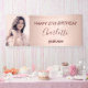 A banner celebrating a 21st (or any age)milestone birthday for a girl, woman. An elegant trendy rose gold, pink gradient background. Personalize and add your own photo of the birthday girl. The text: The name in dark burgundy with a modern hand lettered style script. Tempates for a name, age 21 and a date. Can be used as a party welcome sign, party wall decoration and as a keepsake.