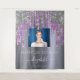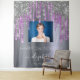 A tapestry for a girly and glamourous 21st (or any age) birthday party. A faux silver looking background with elegant purple and faux silver glitter drips, paint dripping look. Personalise and add your own high quality photo of the birthday girl. The text: The name is written in white with a modern hand lettered style script with swases. To keep the swashes only delete the sample name, leave the spaces or emoji's in front and after the name. Tempates for a name, age 21 and a date. Can be used as wall decor for the party or as a photo booth backdrop.