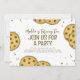 This design features a birthday party invitation, perfect for kids, boys or girls, watercolor, with a chocolate chip cookie, cute, typography design, with a baked goods, dessert theme