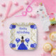 This birthday plate features an elegant gold frame, a beautiful princess with dark skin and a royal blue dress, flowers and a balloon. This is perfect for a birthday party.