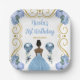 Birthday Party Dark Skin Princess in Dusty Blue Paper Plate