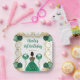 This birthday plate features an elegant gold frame, a beautiful princess with dark skin and a green dress, flowers and a balloon. This is perfect for a birthday party.